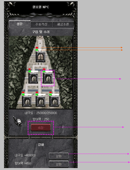 - Vaidmuo : 6 pilies vartų ir 4 guardian statulų priežiūra bei tobulinimas, mokesčių nustatymas