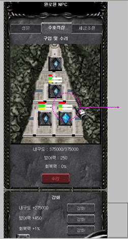Mygtukas gynybos galios (Armor) tobulinimui |