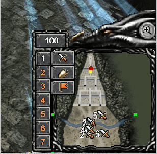 Puolančių ir ginančių komandų gildijų nariams apgulties būsena (mini map) rodoma apatinėje dešinėje ekrano pusėje.