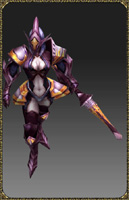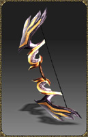 Divine sprit Nornen’s bow. Its wing shape symbolizes the wind and has blue violet shades all over. Draw a bow with a strong will and its arrows become so powerful that it can penetrate any object. |