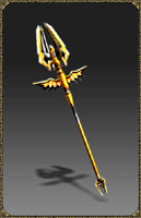The Soleil Scepter has the divine protection from the God of light Rugard. It possesses a golden aura around it and there are a set of wings attached on upper part that symbolizes the Garuda clan. |