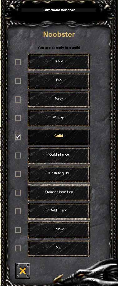 Privačią žinutę savo gildijai galite siųsti prieš tekstą įrašę simbolį @. Gildijos žinutės rodomos žalia spalva ir jas gali skaityti bei siųsti tik jūsų gildijos nariai.